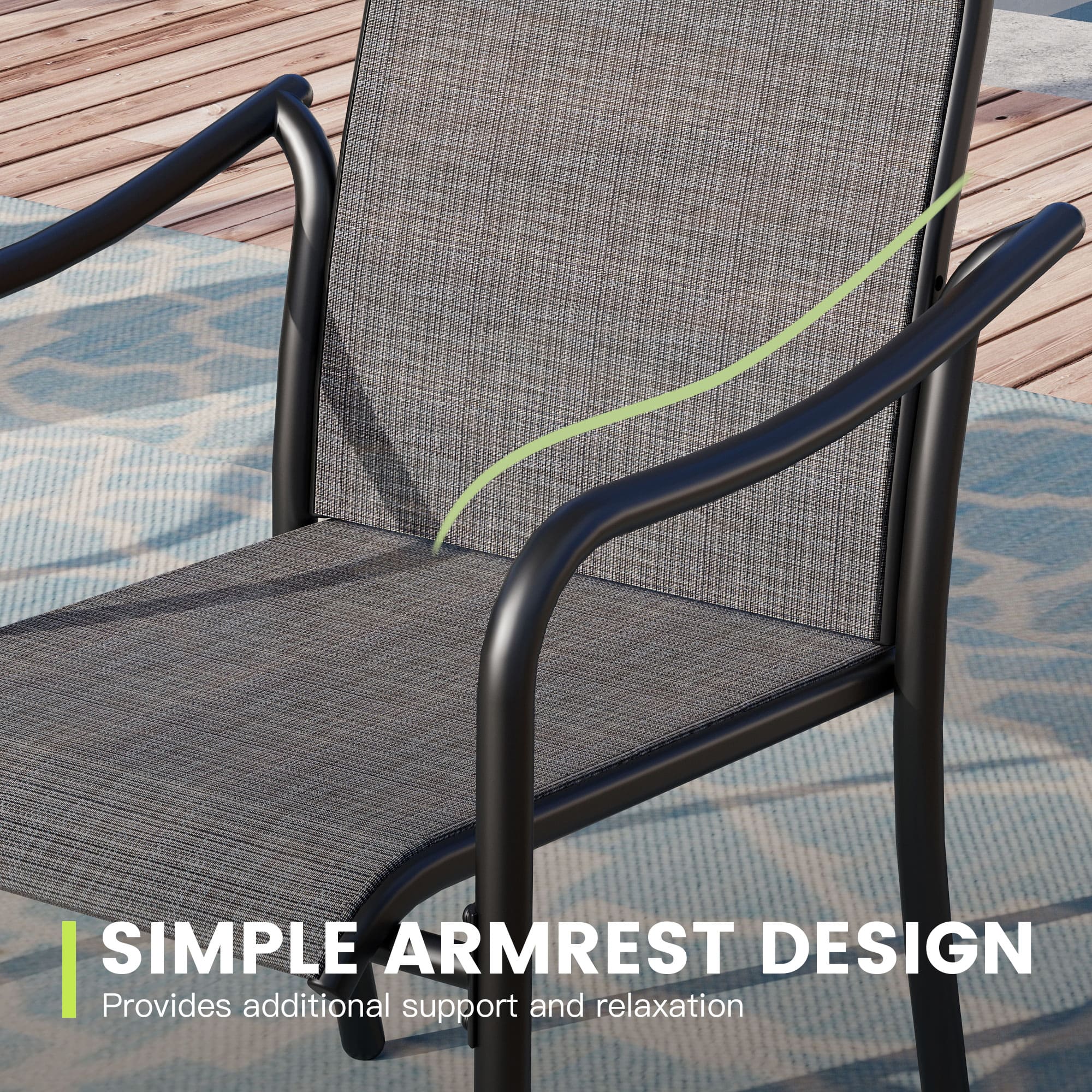 【Textilene Fabric】Breathable sling chairs feature good airflow, UV, fade, and stain-resistant, comfortable to sit in the courtyard or garden on a hot summer day.
